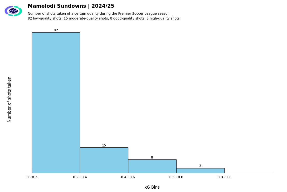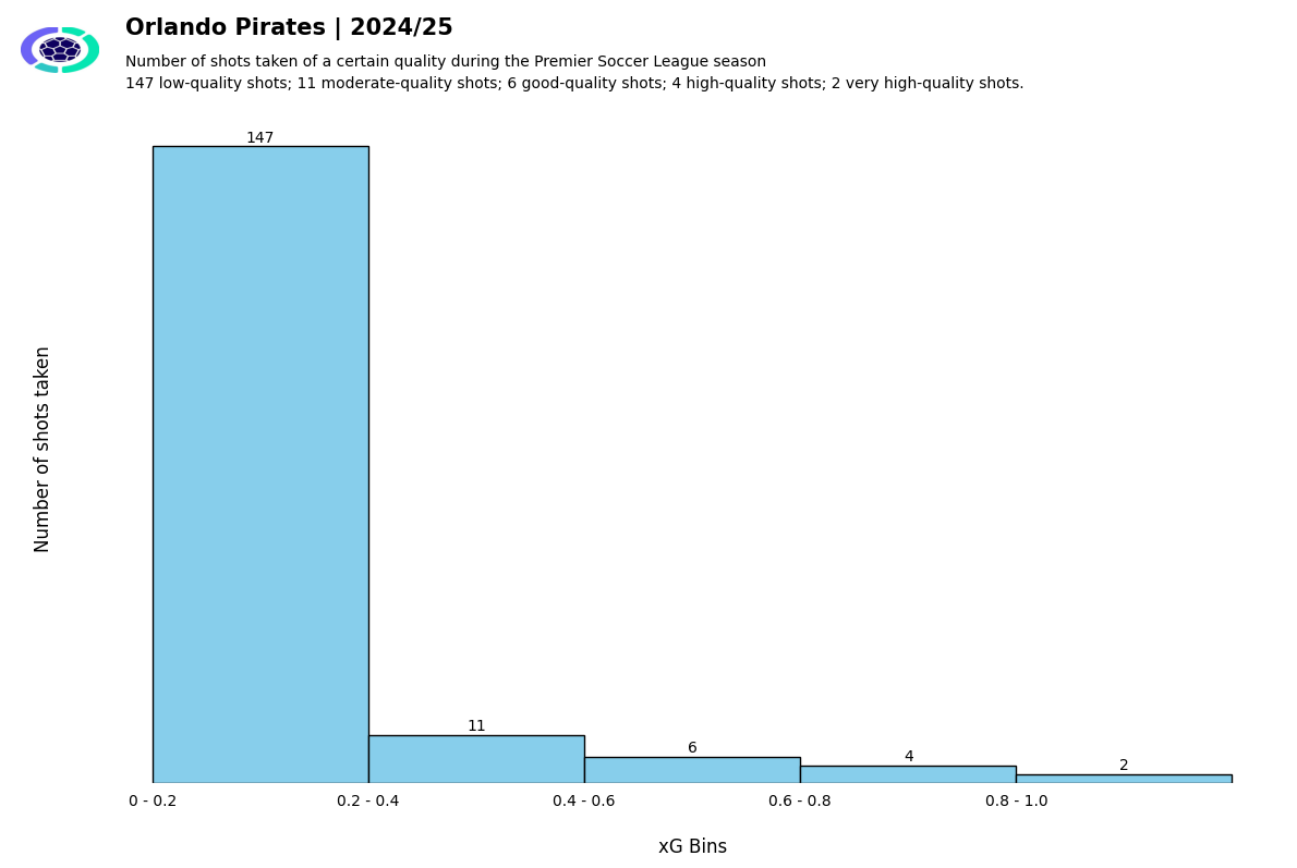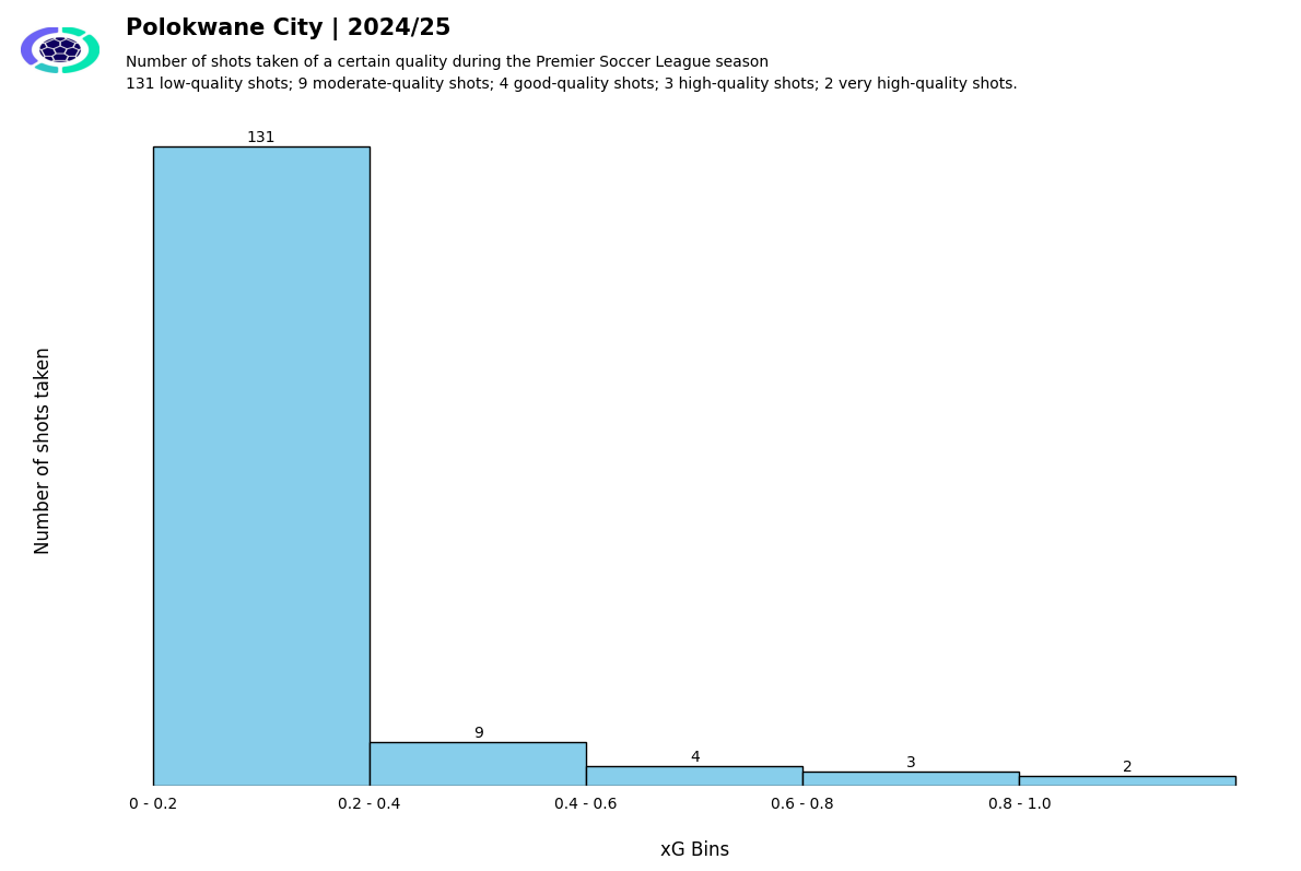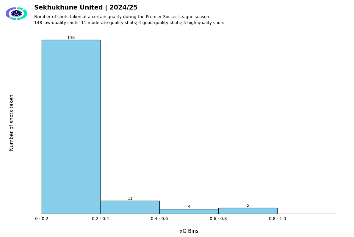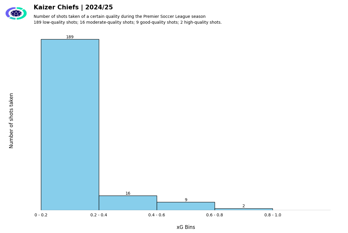 In the xG bin charts, we’ve categorized all teams' shots into four groups: